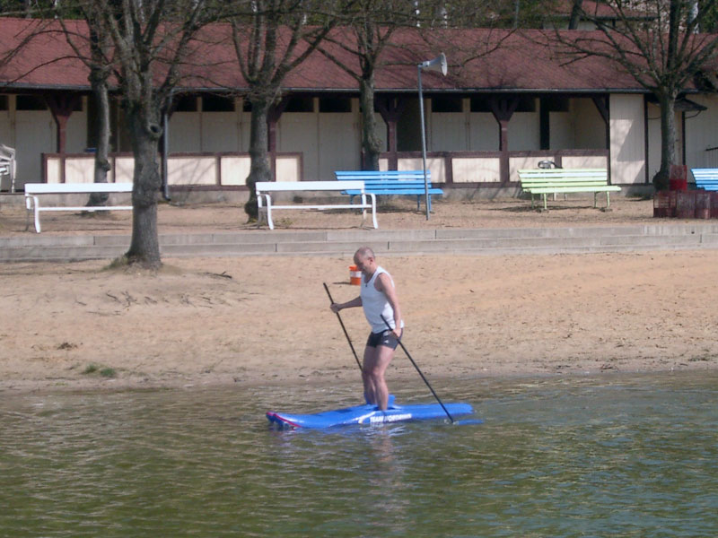 Zur Eröffnung der neuen Badesaison schnürt der Biesenthaler Bürgermeister André Stahl seine „Stiefel“ und probiert die neue Fun Sportart des Sommers 2007 für jung und alt aus – Water-Walking. Mit speziellen Schuhen kann man zukünftig das Wasser des Wukensees auch zum Spaziergang benutzen.