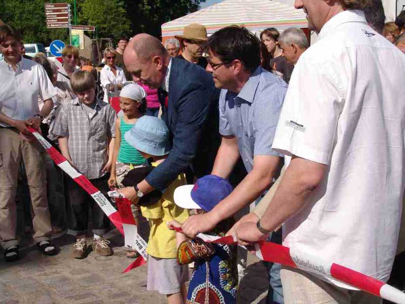 Bei der anschließenden feierlichen Einweihung der neuen Bahnhofstraße hob Dellmann auch den Anteil der Stadt Biesenthal der letzten Jahre an der Verbesserung der Verkehrssituation für Straße und Bahn hervor. Er würdigte ausdrücklich das Engagement des gemeinnützigen Vereins „Kultur im Bahnhof“, der sich für eine Aufwertung und den Erhalt des Bahnhofs engagiere. Dieser hatte die Feierlichkeiten rund um den Bahnhof arrangiert und mit dem 3. Straßenmusikerfestival einen verlockenden Rahmen gegeben. Auf der Bühne wechselten sich sechs Stunden lang zahlreiche Musiker und Gruppen ab, die ein großes Spektrum der aktuellen Straßenmusik wiederspiegelten. Zum Abschluss brachte die peruanische Band „Fernando Vidales y su fina estampa“ ein begeistertes Publikum zum Tanzen. (hr)