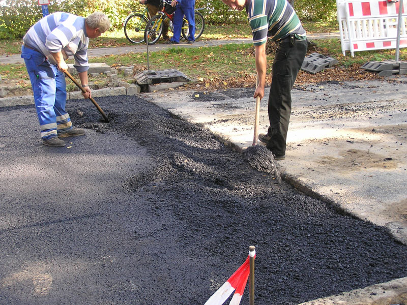 Die noch fehlenden 3 cm Deckschicht werden erst in einigen Wochen aufgebracht, wenn die Gesamtstrecke dafür bereit ist.
