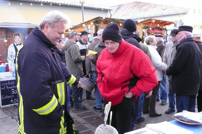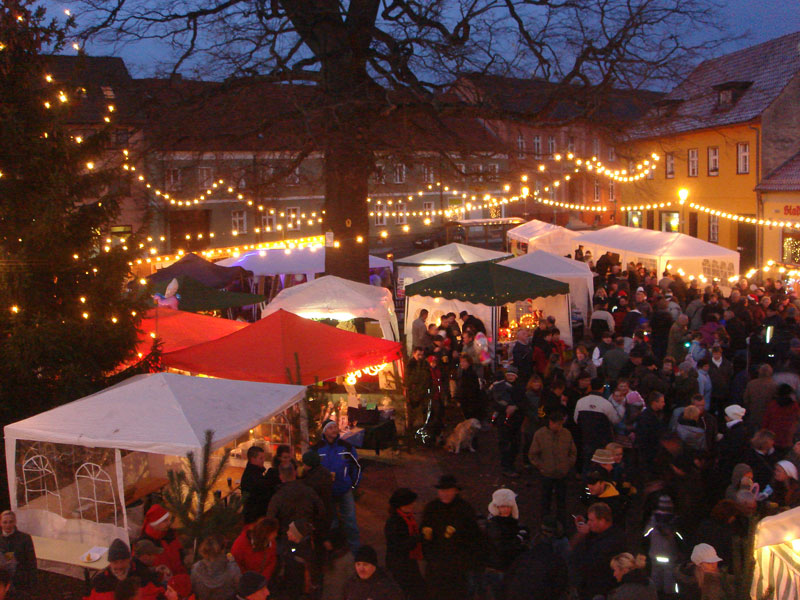 Der traditionelle Weihnachtsmarkt lockte wieder viele Besucher aus nah und fern auf den Marktplatz rund um die Eiche. Ortsansässige und fremde Händler präsentierten in liebevoll dekorierten Holzhütten und Ständen besondere Geschenkideen für das bevorstehende Weihnachtsfest. Viele Stände luden mit Glühwein, Kaffee, heißer Trinkschokolade, Süßem und Herzhaftem zum Verweilen ein.
