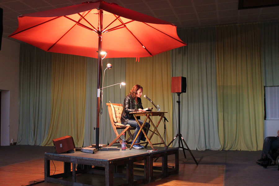 Sichtlich wohl fühlte sich Marion Brasch am Samstag Abend, zu Gast in der Biesenthaler Möbelfolie auf Einladung von Kultur im Bahnhof e.V.. Ein spannender Ort, der wie geschaffen dafür war, sich an ein Leben in der DDR zu erinnern. Skurril wirkte da die kleine Bühne, die mit Gartenmöbeln bestückt unter einem bunten Sonnenschirm entspannte Atmosphäre vermittelte. Diese verleitete Brasch dazu, gleich mit einer Passage ihres Buches über Hiddensee zu beginnen. Bereits nach kurzer Zeit hatte sie die Zuhörer in den Bann gezogen. Das lag nicht nur an ihrer angenehmen Stimme mit Wiedererkennungserlebnis – die Einen kennen sie aktuell von radioeins, die Anderen erinnern sich an die dt64 Moderatorin – sondern auch an ihrer aufgeweckten Vorstellung. Genauso lebendig wie sie in ihrem Buch schreibt, las sie vor, antwortete auf Fragen und gab Hintergründe preis. Es war offensichtlich, dass nicht wenige der 80 Zuhörer bereits in ihrem Buch gelesen hatten und diese beeindruckende Persönlichkeit, so bescheiden wie sie daher kam, live erleben wollten.