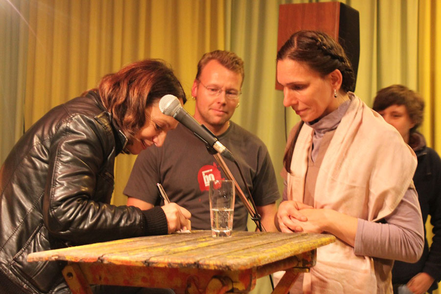 Zu dem Buch sei sie gekommen, weil sie aufgefordert wurde, ihre Erlebnisse aufzuschreiben. Jetzt machte sie den Eindruck, dass sie ihre Geschichte und den Verlust von Eltern und Brüdern nicht nur außerordentlich gut für sich verarbeitet, sondern auch am Schreiben Interesse gefunden hat. Noch ist nicht „Ruhe“ und es sei jedem empfohlen, eine ihrer Lesungen zu besuchen oder gar selber nachzulesen. Leider hatte der Verlag keine Bücher zum Verkauf bereitgestellt und so blieb es nur wenigen vorbehalten, sich ein Autogramm in ihr Exemplar einschreiben zu lassen.