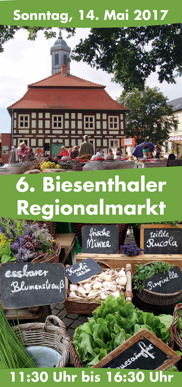 Am Sonntag, den 14. Mai findet zum sechsten Mal der Biesenthaler Regionalmarkt rund um die Jubiläumseiche vor dem historischen Fachwerkrathaus statt.