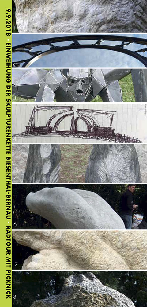 Im vergangenen Jahr fand das 5. deutsch-polnische Bildhauersymposium „Werkstatt im Freien" zum Thema „Into the Blue“ statt. Initiiert und organisiert durch den Verein Kultur im Bahnhof e. V., Anne Schulz und die Stadt Biesenthal mit der Stadt Bernau als Partnerstadt. Acht Bildhauer, vier polnische und vier deutsche, trafen sich im September 2017 auf dem Festplatz am Eulenberg in Biesenthal und schufen acht Skulpturen unter der Prämisse, dass sie ihren Platz am Fernradwanderweg Berlin-Usedom finden werden und damit eine bildkünstlerische Verbindungslinie zwischen beiden Städten zeichnen. Anlässlich des Tags des offenen Denkmals soll nun die Skulpturenkette eingeweiht werden. Und das natürlich, wie es sich an einem Radwanderweg gehört – per Rad. Start ist 10 Uhr in Biesenthal am Fischerkiez. Nach sieben absolvierten Skulpturenstandorten wird am letzten, dem achten Standort – Neue Gärten/am Panke-Mäander in Bernau – zum abschließenden Picknick eingeladen.