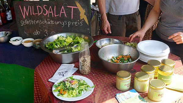 Wieder erwarten Sie auf dem Markt ab 11.30 Uhr bunte Stände mit Produkten aus der Region von frischem Gemüse, Honig, leckerem Käse und heimischem Wildfleisch, Wurst und Fleisch der Wanderschäferei aus Bralitz, von Kräutern bis zu jungen Pflänzchen für den eigenen Blumenkasten, alles gentechnikfrei angebaut und zumeist aus ökologischem Anbau. Für Hungrige gibt es Biobratwurst, allerlei Vegetarisches und Wildkräutersalate, herzhafte und süße Crepes aus der Wukantina, Ziegenkäse-Burger aus Brodowin und den berühmten selbst gebackenen Blechkuchen aus dem Holzofen vom Kulturbahnhof Biesenthal. Dazu gibt es Kunsthandwerk aus der Region, einen Fair Trade Stand und wunderschöne Flechtwaren der Korbmacher aus unserer polnischen Partnerstadt Nowy Tomysl.