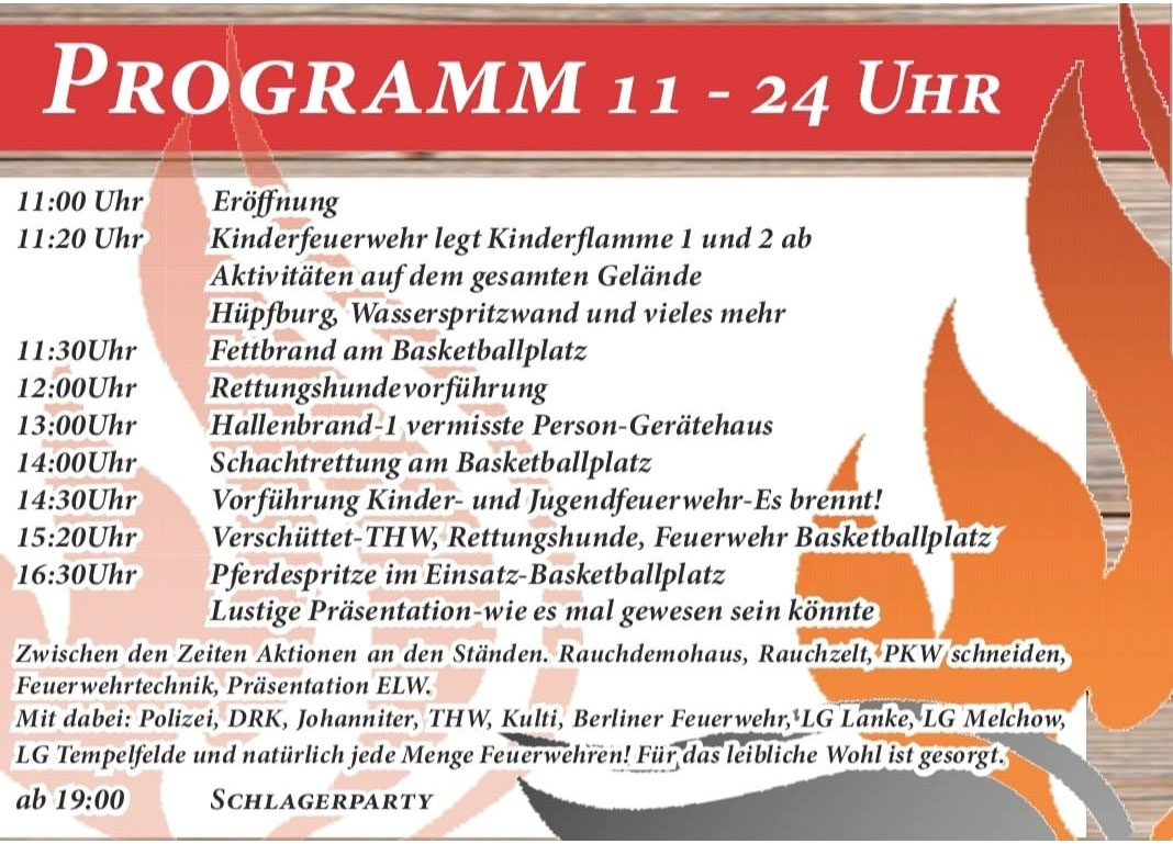 Tolle Unterhaltung, spannende Vorführungen, Rettungshunde, DRK, Rettungsdienst, Polizei, THW und natürlich jede Menge Feuerwehren. Ein buntes und informatives Programm bringt Einsicht, in die Arbeit vieler Ehrenamtlicher Kräfte. Außerdem feiern wir unseren 112 jährigen Geburtstag. Kommen Sie vorbei, feiern Sie mit uns und schauen Sie sich die wichtigen Aufgaben jeder einzelnen Hilfsorganisation an.