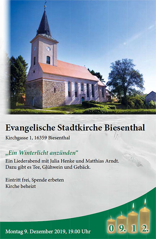 Montag, 9. Dezember, 19 Uhr · Evangelische Stadtkirche