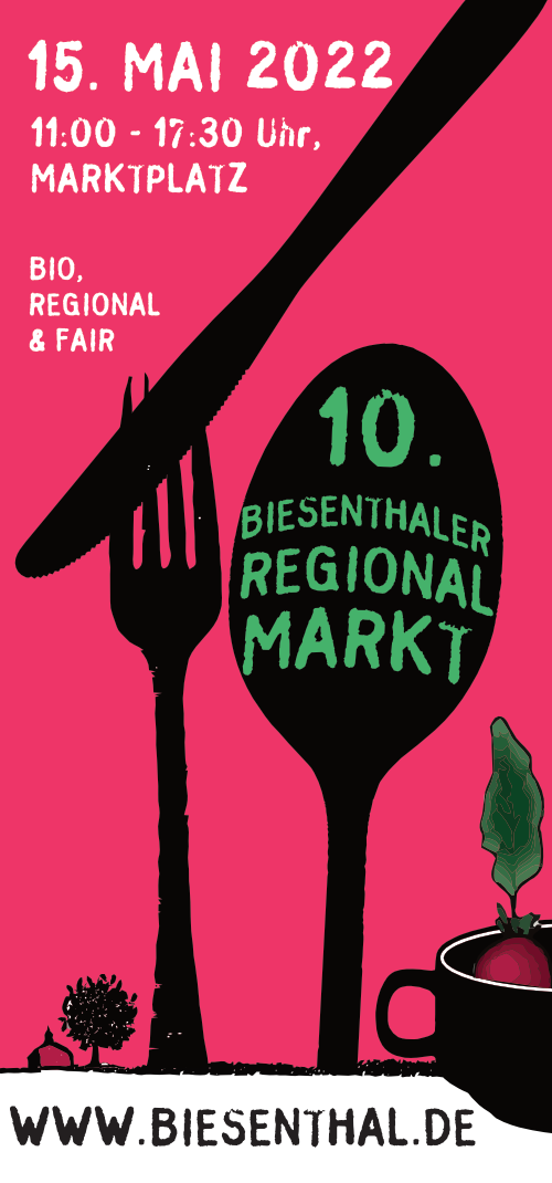 Wir feiern Jubiläum: nun zum 10. Male findet er statt, der Biesenthal Regionalmarkt. Am Sonntag, den 15. Mai 2022 werden wieder Marktstände, eine Bühne und viele Gäste den Platz vor dem historischen Fachwerkrathaus rund um die Jubiläumseiche beleben. Um 11:00 Uhr geht es los, mit bunten Ständen, welche die vielfältigen Produkte aus unserer Region anbieten: Frische Salate und leckerer Käse aus dem Barnim, Jungpflanzen für den Garten, Wurst und Wildfleisch aus der Uckermark, und vieles mehr, meist aus ökologischem Anbau. Hier können Sie die Bäuerinnen und Bauern direkt kennen lernen und mit Ihnen ins Gespräch kommen.