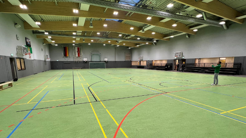 Die Gesamtfläche der Sporthalle beträgt 1.900 Quadratmeter. Auf 1.200 Quadratmetern Spielfeldfläche wurde in den letzten Monaten ein hochmoderner Sport-Schwingboden, der allen Anforderungen gerecht wird, verbaut. Die Sporthalle bietet Platz für 200 Personen. Sie ist barrierefrei konstruiert, so dass sie für alle Menschen, unabhängig von ihren individuellen Bedürfnissen, zugänglich und nutzbar ist.