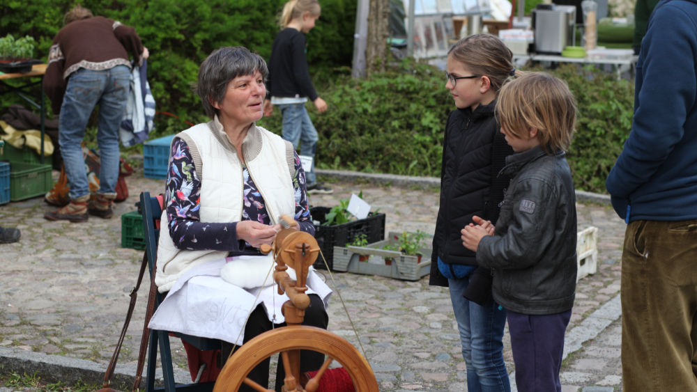 Wer schon immer mal Weidenflechten wollte, kann sich ab 14:30 Uhr beim Workshop ausprobieren. Für unsere kleinen Gäste gibt es Schminken, Basteltische, den Mitmachzirkus Wuckizucki und weitere Programmpunkte und ab 15 Uhr das Trio Baumtänzerei. Die Akrobaten werden sich in die Lüfte der alten Eiche schwingen, auf Stelzen über den Markt laufen und dabei eine wundersame Musikgeschichte vorstellen.