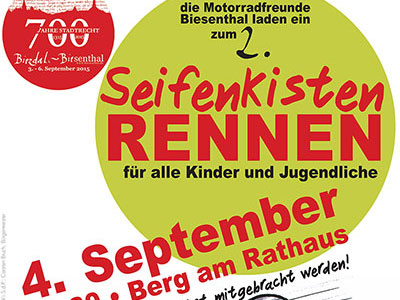 Am 4.09.2015 führen wir, die Motoradfreunde Biesenthal, anlässlich der 700 Jahrfeier Stadtrecht Biesenthal ein Seifenkistenrennen durch. Wie schon beim 1. Seifenkisten­rennen 2008 findet die Veranstaltung am Berg in der Berliner Straße statt. Ziel der Veranstaltung ist es, Kinder und Jugendliche zu fairen und sportlichen Verhalten zu motivieren und das Interesse an motorsportlichen Veranstaltungen zu wecken.