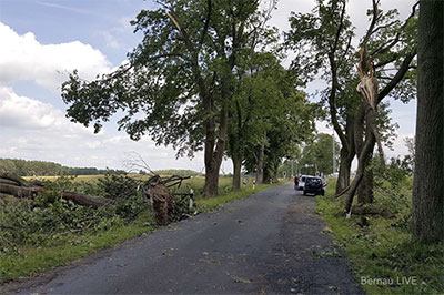 Die Kreisstraße K 6005 bleibt gesperrt. Darüber informiert die Straßenbaubehörde des Landkreises Barnim. Als Grund dafür gibt die Behörde neun umgestürzte Alleebäume an, die bei dem Unwetter am Wochenende dem Wind nicht standhalten konnten und nun beseitigt werden müssen. Die Straße ist zwischen dem Ortsausgang Rüdnitz bis zum Ortseingang Danewitz für den gesamten Straßenverkehr gesperrt. Die Aufräumarbeiten sollen etwa eine Woche dauern.