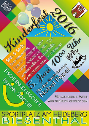 Alle Kinder mit Ihren Eltern, Omas, Opas, Freunden und Bekannten haben am Sonntag, den 05.06. ab 10.00 Uhr wieder die Gelegenheit, den Biesenthaler Sportplatz „Am Heideberg“ gemeinsam bei einem tollen Kinderprogramm zu erkunden und zu erleben. Bei Spiel- und Spaßangeboten für Groß und Klein laden wir Euch Kinder zum Mitmachen und Ausprobieren ein.