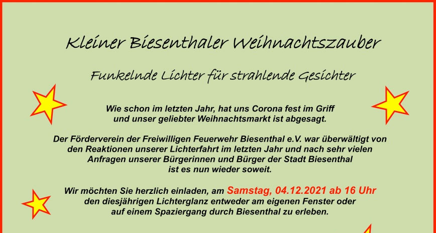 Biesenthaler Weihnachtsmarkt 2021 – Aufruf zum Mitmachen
