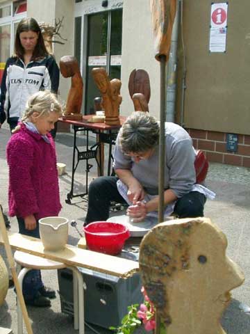 Die Töpferin Marianne Freyer beim Schaudrehen