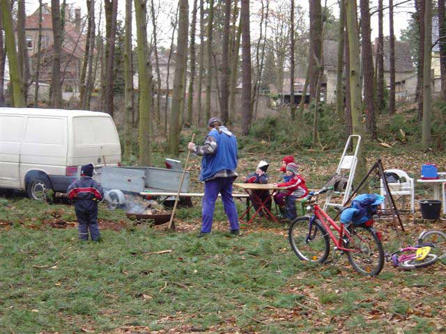 Arbeitseinsatz am 1.4.06: Die Baumstämme werden geschält.