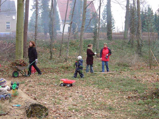 Arbeitseinsatz am 1.4.06: Die Baumstämme werden geschält.