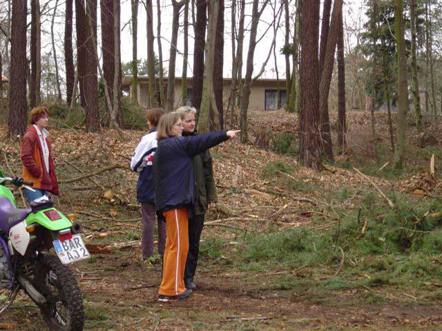 Arbeitseinsatz am 1.4.06: Die Baumstämme werden geschält.