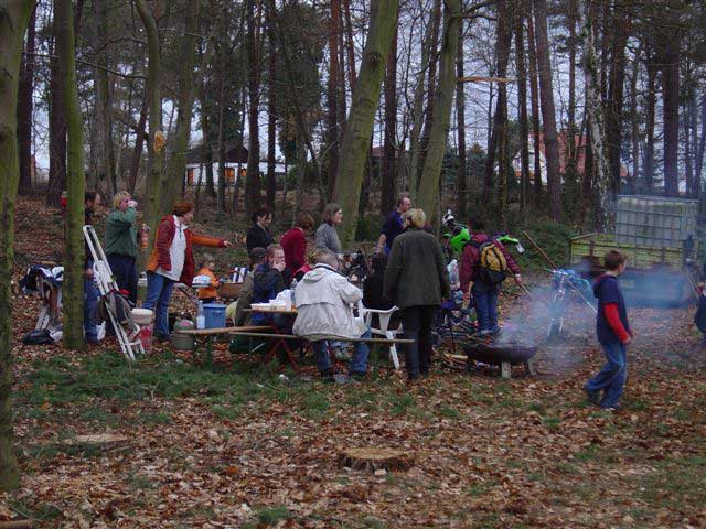Arbeitseinsatz am 1.4.06: Die Baumstämme werden geschält.