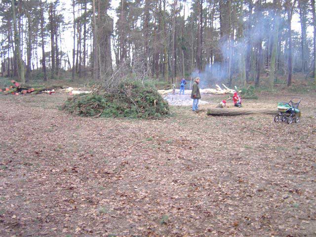 Arbeitseinsatz am 1.4.06: Die Baumstämme werden geschält.