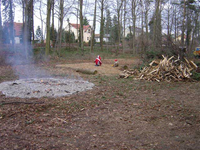 Arbeitseinsatz am 1.4.06: Die Baumstämme werden geschält.