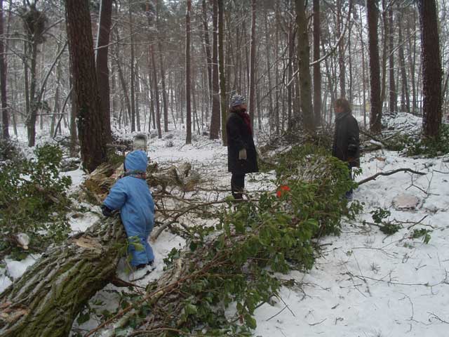 11.3.06 Das Holz der gefällten Bäume wird für den Sandkasten und den Baumstammwald verwendet.